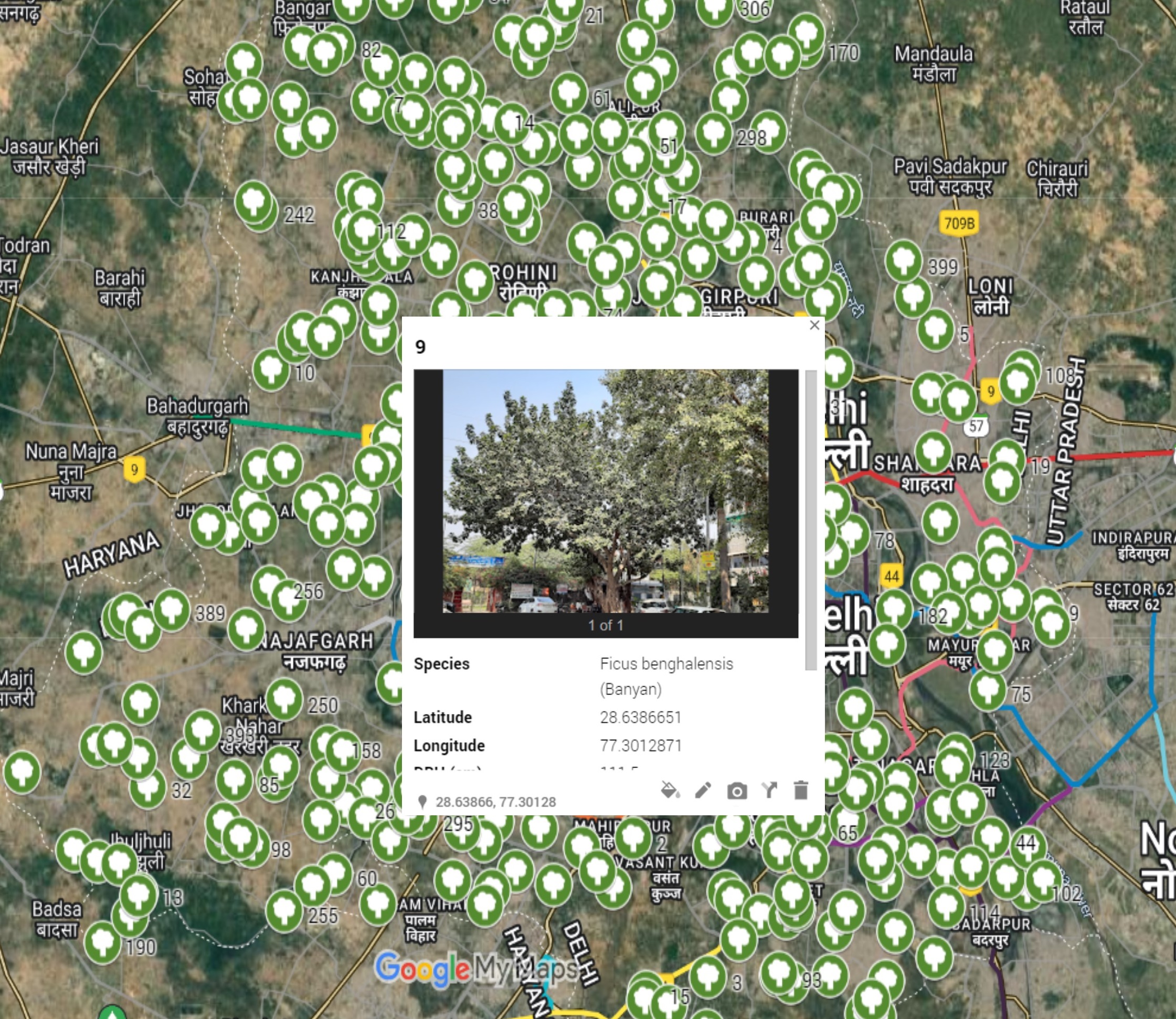 We create an online tree inventory with shareable URL link (map). This will have GPS coordinates for each group of trees, tree species, tree benefits etc.